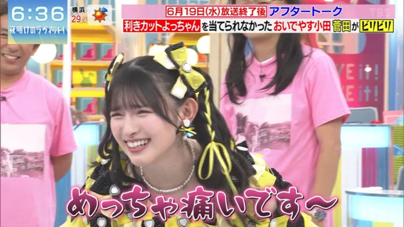 | 19歳アイドル、午前8時の生放送なのに「眩しすぎる」 朝とは思えぬビジュにMC思わず「美しい」 …「おじさん顔パンパンやで」 超ときめき▲宣伝部(▲はハートマーク)のメンバー・菅田愛貴(19)が10日、TBS系『ラヴィット!』(月~金曜午前8時)に生出演。 (出典:ENCOUNT) |