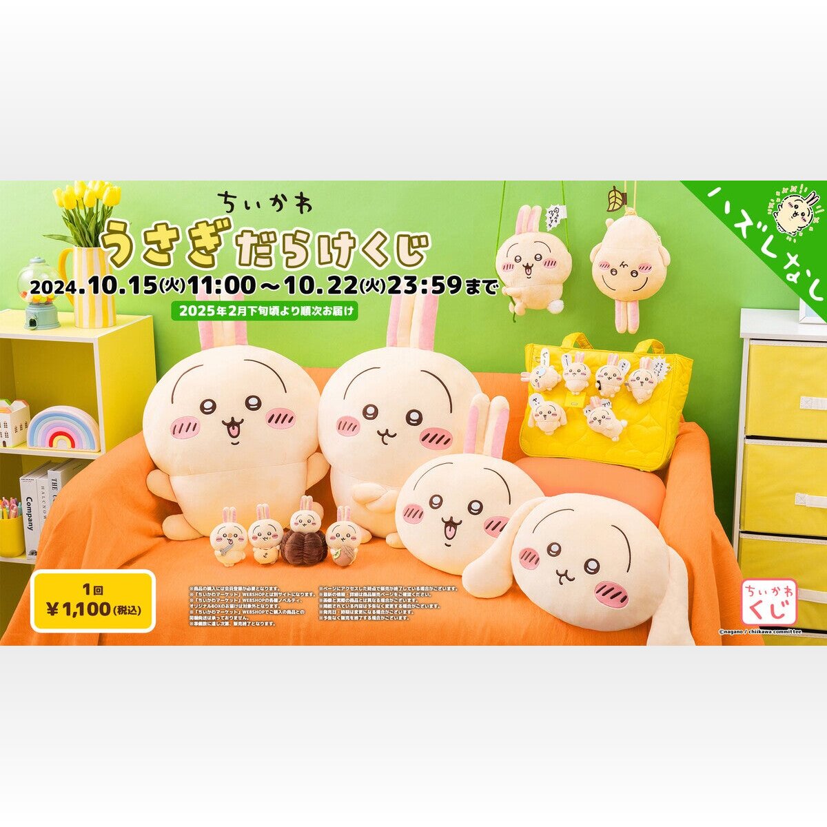 | ハァ?「ちいかわ」うさぎしか当たらない!? 全16種の“うさぎだらけくじ”登場 …『ちいかわ』から「うさぎ」しか当たらない型破りなオンラインくじ「ちいかわ うさぎだらけくじ」が登場。オンラインくじサービス「ちいかわマーケット ちいかわくじ」… (出典:アニメ!アニメ!) |