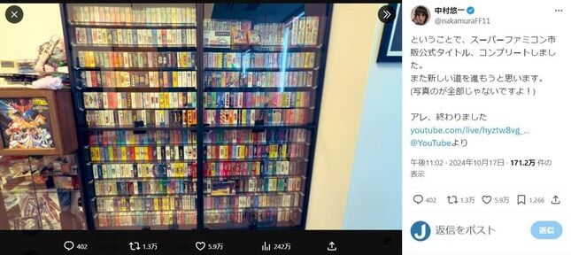 今年の10月に発表された中村悠一さんのスーファミソフト収集には驚かされました。